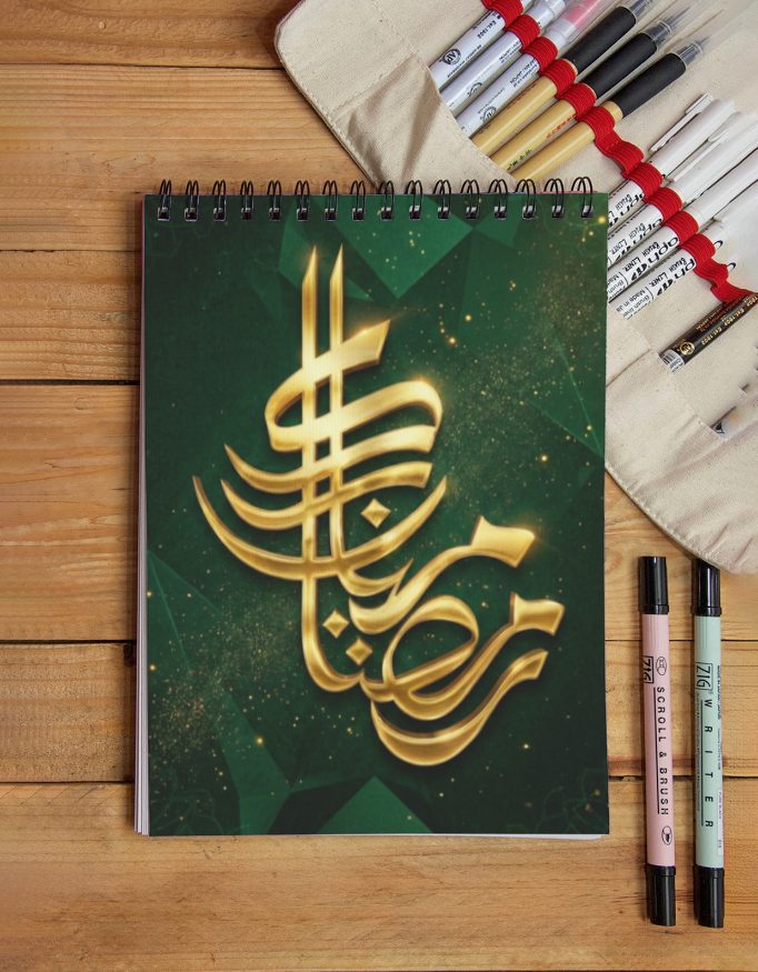 Document your spiritual journey in elegance. This beautifully designed notebook features radiant gold Ramadan Kareem calligraphy on a rich emerald background. Ideal for Quran reflections, gratitude journaling, or planning your acts of worship.